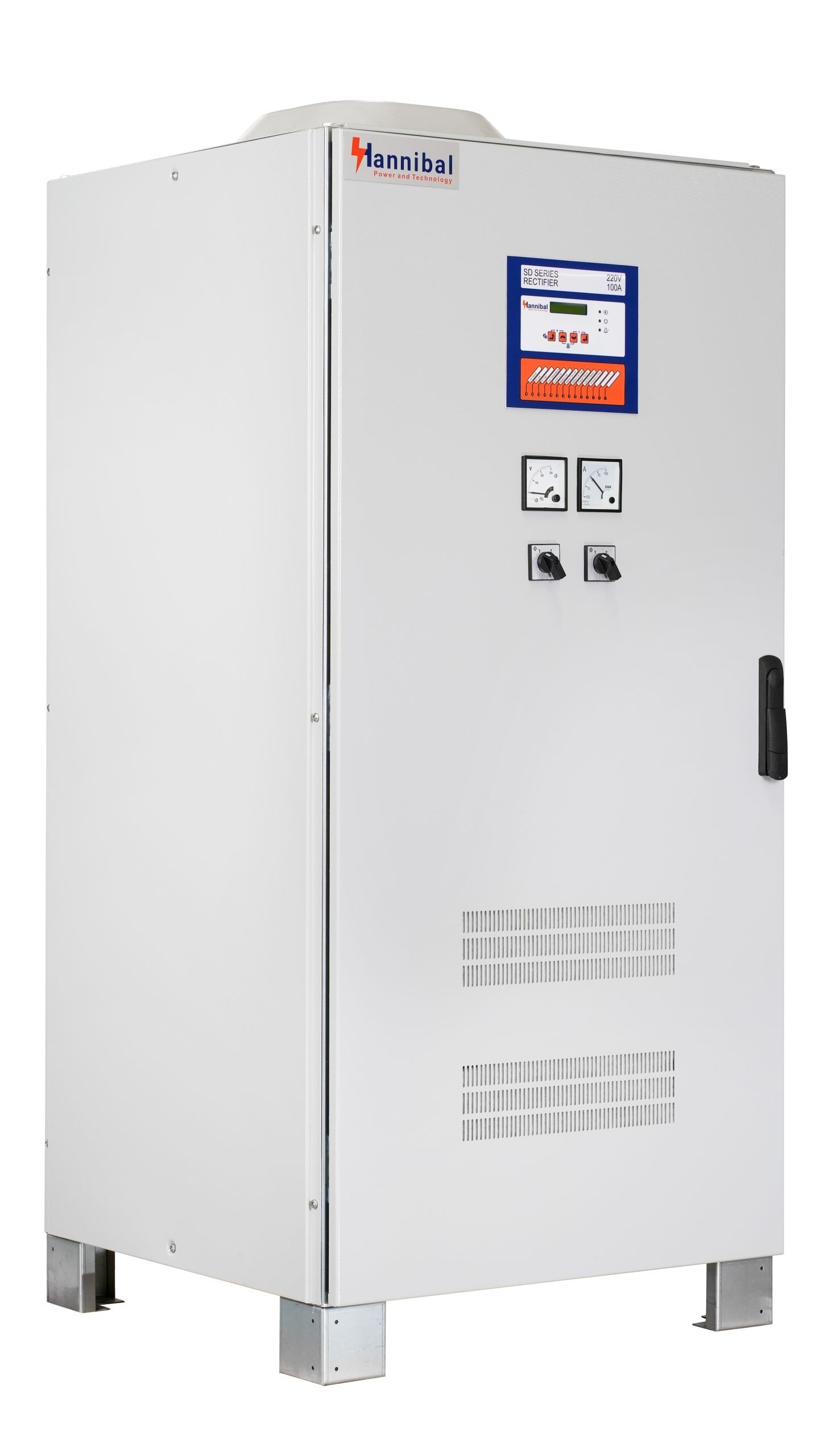 La gamme de redresseurs-chargeurs Hannibal est disponible de 30 A à 250 A avec une entrée monophasée, et de 30 A à 2500 A avec une entrée triphasée. Elle propose plusieurs tensions de sortie allant de 24 Vcc à 384 Vcc.